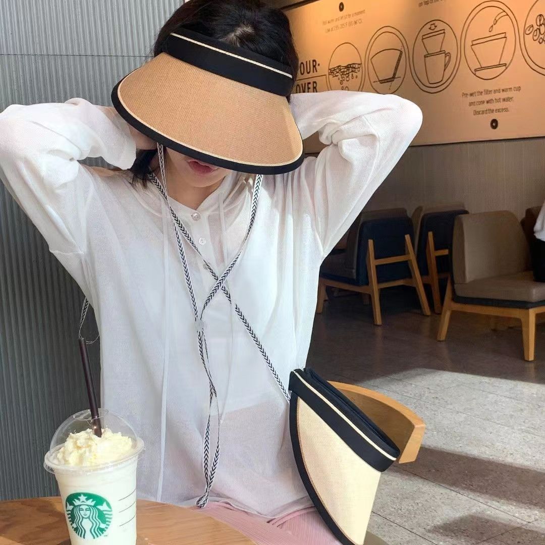 Color: strap foldable straw hat-khaki, strap foldable straw hat-black, strap foldable straw hat-beige