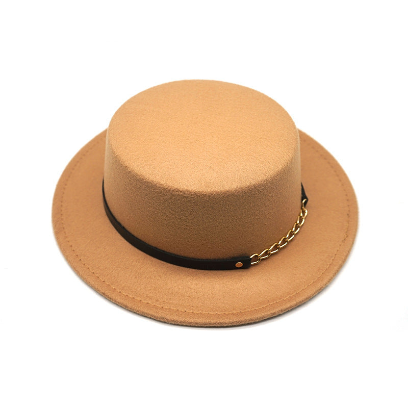 This Solid Color Cordobes Hat exudes effortless sophistication. Crafted with a richly-colored felt, this hat is adorned with a ribbon and chain band for a touch of luxury. Perfect for any occasion, it adds a touch of style to any outfit. Elevate your look with this timeless accessory.