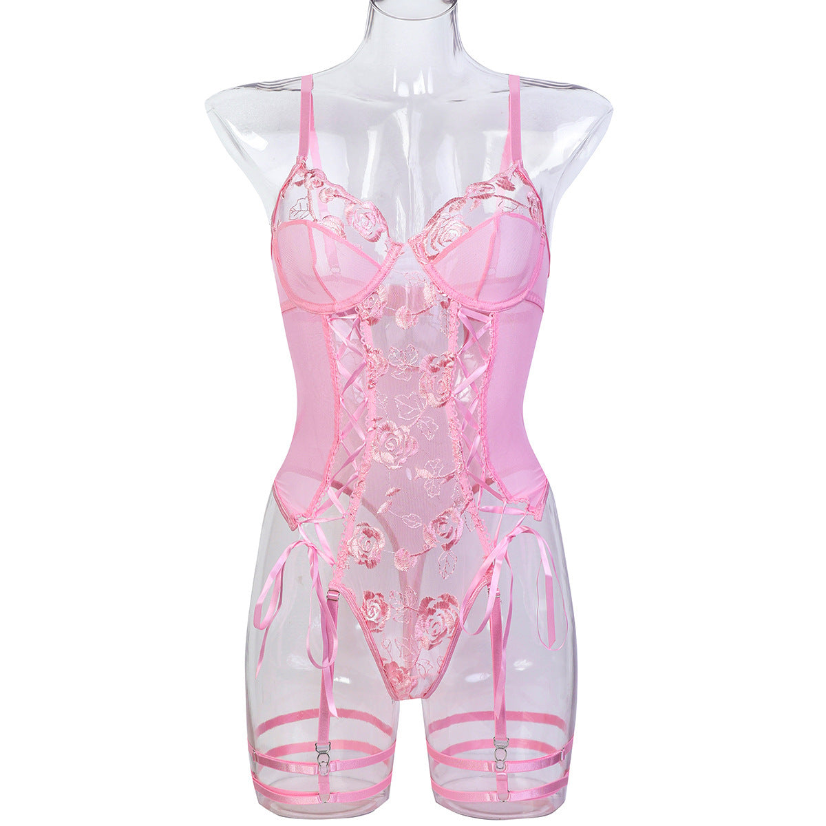 Spread love (and a little spice) this Valentine's Day with our Red Rose Flower Embroidery Cross Sexy Underwear. Featuring a playful tie-neck design, this lingerie will make you feel sexy and confident for your special someone. (Who says flowers have to be the only gift?)